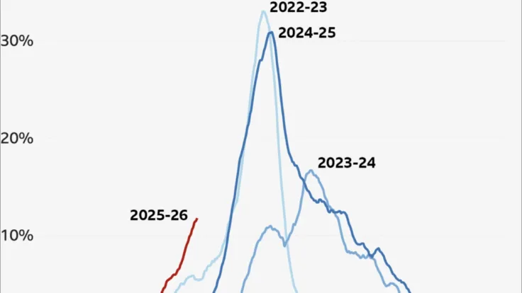 این تصویر وضعیت موارد ابتلا به آنفلوآنزا در بریتانیا را نشان میدهد. همانطور که مشاهده میکنید، امسال شروع فصل آنفلوآنزا زودتر از سالهای قبلی است (خط قرمز). محققان معتقدند که این موضوع به خاطر جهشهای جدید سویهی H3N2 است. هفت جهش در این سویه شناسایی شده و حالا موارد ابتلا، سریعتر از حد انتظار افزایش […]
